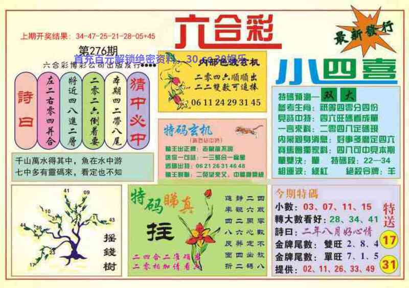 281期:白姐特段/简单发财诗/马会欲钱料/七娘一句中/开藏特图料